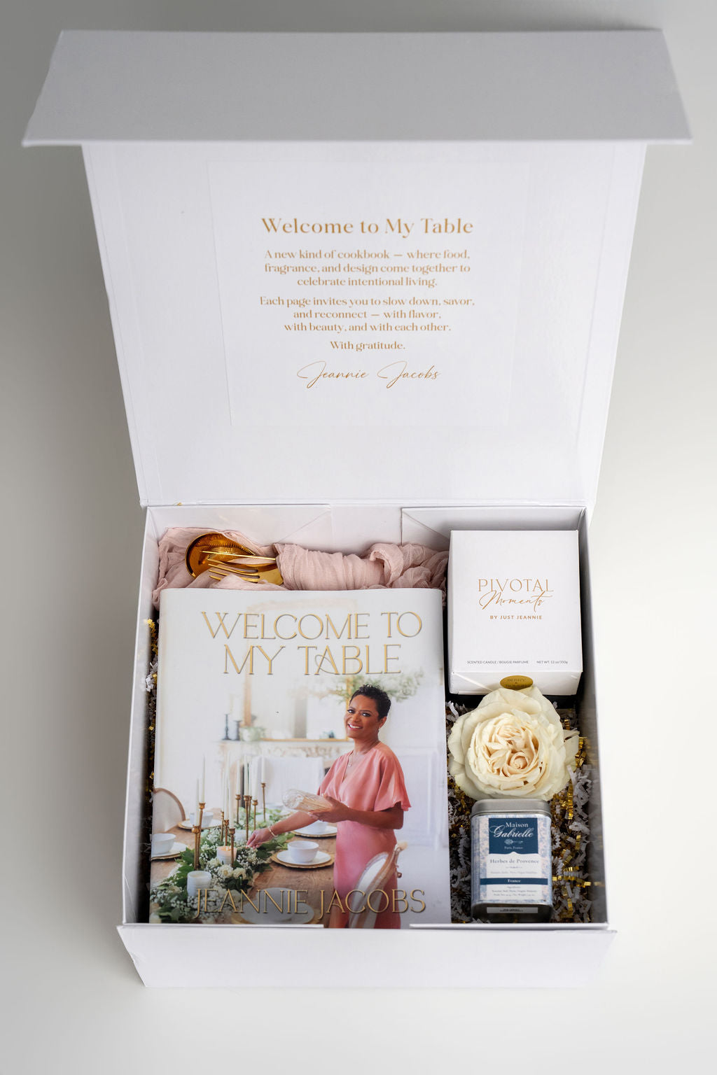This collection is a sensory celebration of taste, scent, and style. Each signed cookbook anchors the set with heartfelt recipes and reflections, while the Heart of Hosting guide offers practical insights to make entertaining graceful and joyful.